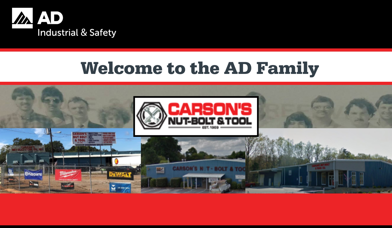 AD, the leading contractor and industrial products wholesale buying group, is pleased to announce that Carson’s Nut-Bolt & Tool Co., Inc. will join the AD Industrial & Safety Division – U.S. effective January 1, 2026. This addition reflects AD’s continued growth strategy and commitment to expanding its presence in key industrial and contractor-focused markets.